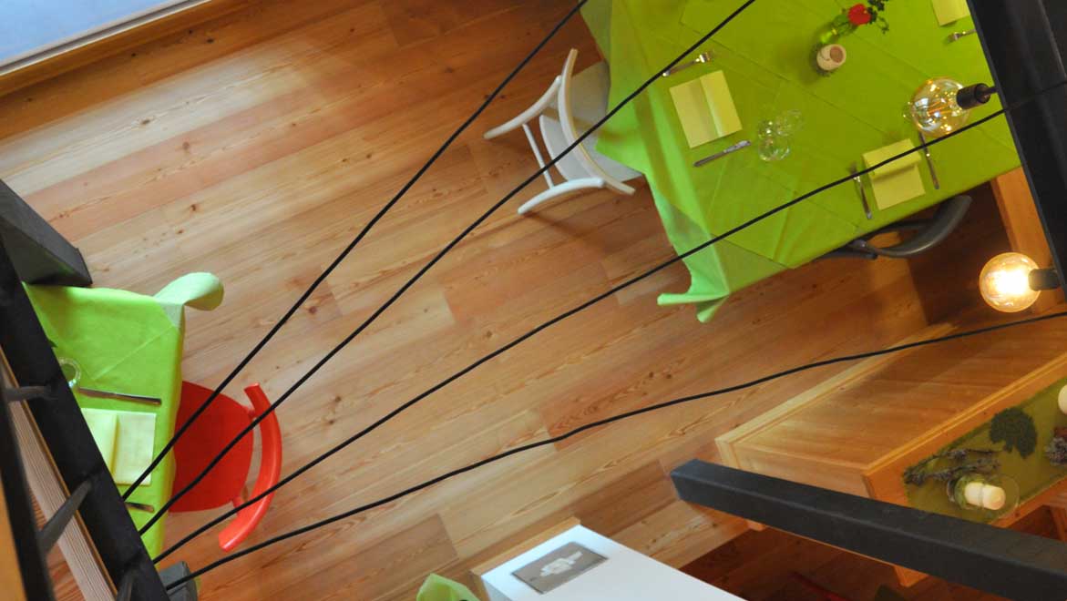Un vecchio edificio ristrutturato per diventare uno spazio di condivisione e incontro, con uno stile montano rivisitato in chiave moderna.